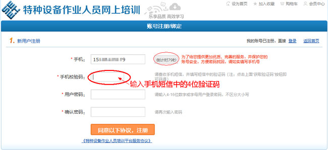 填写“用户密码”,再次输入用户密码,浏览协议并点击“同意以下协议,注册”按钮。 注:如果没有学习卡,可以点击“我没卡,进入试用”;