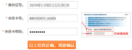 3、输入“身份证号、学习卡号、学习卡密码”,并点击“以上信息正确,我要确认”按钮。